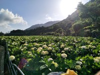 竹子湖海芋進入花季尾聲,緊接著不少繡球花田宣布於5月1日開園,位於頂湖區的「大賞園繡球花田」白繡球已開了9成,加上近日下雨,山區霧氣重,讓大片繡球花增添一股朦朧美,隨手拍都超有意境!